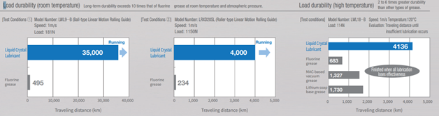 A grafikonok tanúsága szerint a folyadékkristályos kenőanyag 10-szeres tartósságot biztosít normál hőmérsékleten,