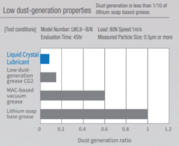 A tesztek kimutatták, hogy a folyadékkristályos kenőanyag porképződése kevesebb mint egytizede a lítiumbázisú kenőanyagokénak,